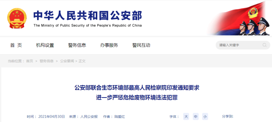 日前,公安部會(huì)同生態(tài)環(huán)境部、最高人民檢察院聯(lián)合印發(fā)通知要求,即日起在全國(guó)集中開(kāi)展為期6個(gè)月的嚴(yán)厲打擊危險(xiǎn)廢物環(huán)境違法犯罪和重點(diǎn)排污單位自動(dòng)監(jiān)測(cè)數(shù)據(jù)弄虛作假違法犯罪專(zhuān)項(xiàng)行動(dòng)。通知明確了此次專(zhuān)項(xiàng)行動(dòng)的打擊重點(diǎn)是依法嚴(yán)厲打擊非法收集、利用、處置廢礦物油以及跨行政區(qū)域非法排放、傾倒、處置危險(xiǎn)廢物等環(huán)境違法犯罪行為,以及依法嚴(yán)厲打擊以篡改、偽造監(jiān)測(cè)數(shù)據(jù)為主要手段逃避生態(tài)環(huán)境監(jiān)管的違法犯罪行為。