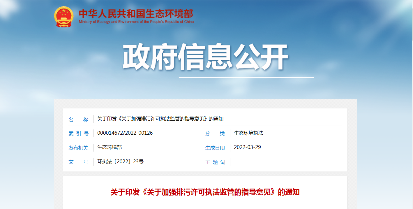 關(guān)于加強(qiáng)排污許可執(zhí)法監(jiān)管的指導(dǎo)意見